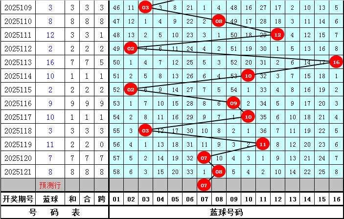 1路红球上期开出2码:10、25,表现一般,最近10期1路红球开出21个奖号,走势一般,本期预计1路红球走势上升,推荐3个红球,关注号码07、16、25。