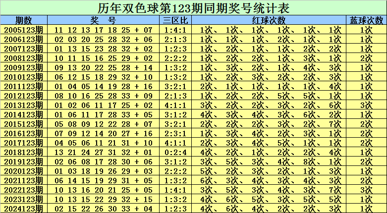 赵灵芝双色球第2025123期历史同期三区奖号分析: