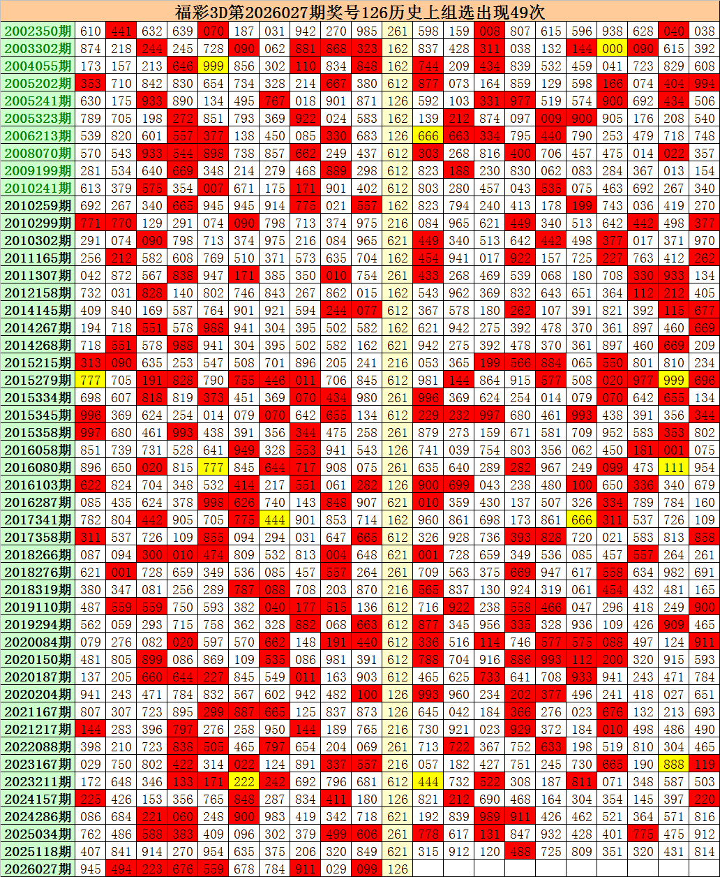上期回顾:福彩3D第2026027期开出奖号126。