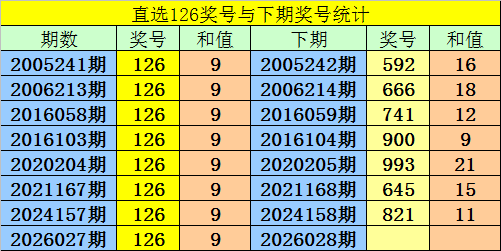 第2026027期3D奖号为:126,历史上该号码直选开出8次,下期号码分别为:592、666、741、900、993、645、821。