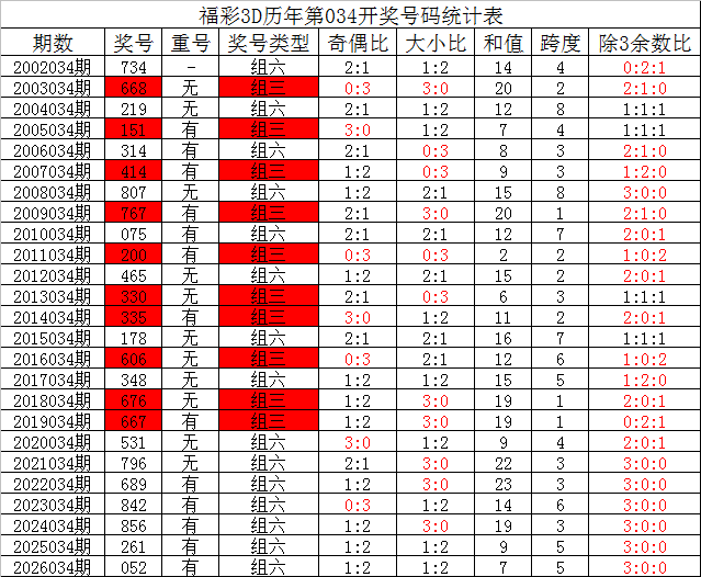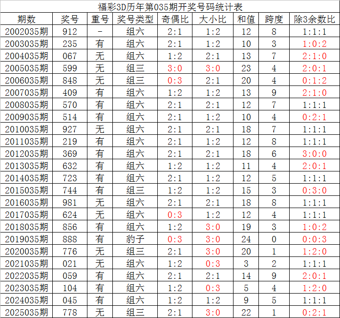 其中,豹子号码出现1次,组三号码开出5次,组六号码出现18次,组六号码目前连续1年没有出现,本期今年同期看好开出组六号码。