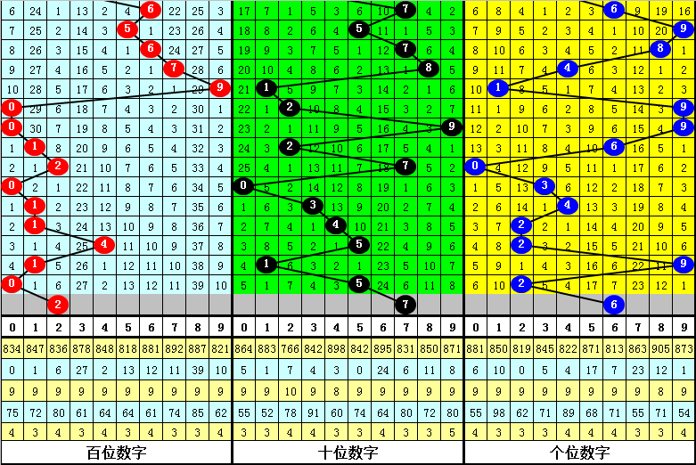 另外,两码合出现期数从高到低分别为:5开出10期,9开出9期,4开出8期,1、3开出7期,6开出6期,0、8开出5期,2、7开出4期,本期两码合参考:3、8、9。
