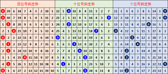 012路分析:上期开出012路比为1:0:2,012路号码走势较前一期未发生变化,最近十期012路总比值较前一期未发生变化,比值是13:9:8。0路号码走势较热,1路号码走势较温,2路号码走势较冷,本期预测0路号码走势上升,推荐012路比值2:1:0