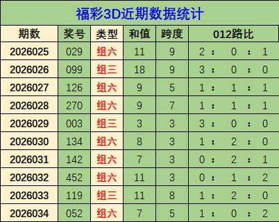 开奖回顾:福彩3D开奖号为052,其中奖号012路比为1:0:2,和值7,跨度为5。