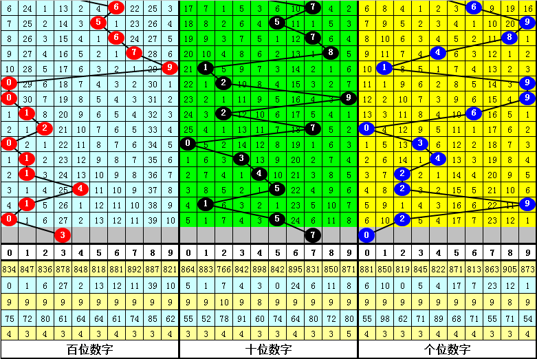 跨度分析:最近5期奖号跨度出现在3-8区段,波动了6个点位,分布较散,上期跨度为5,下降3点,本期看好考跨度上升,预计出现7。