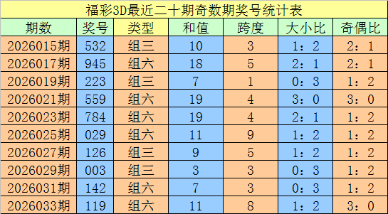 上期回顾:福利彩票3D第2026034期开出奖号052。奖号类型:组六,大小形态:小大小,奇偶形态:偶奇偶。