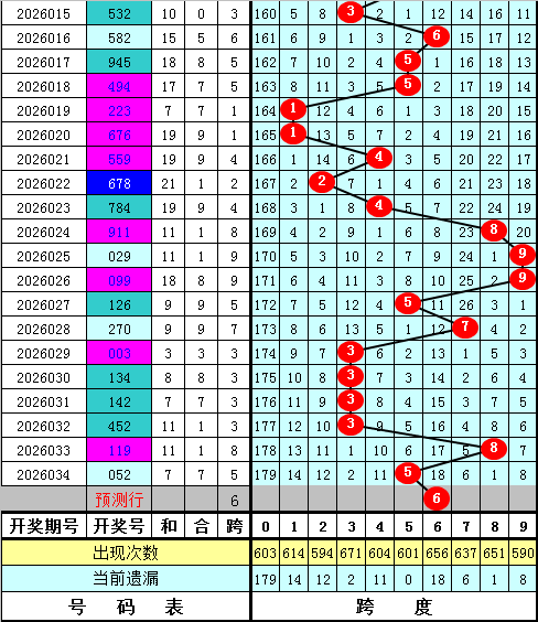 福彩3D第2026034期最大跨度开出5,近期最大跨度波动较大,本期预计最大跨度在4-8区段出现,最大跨度关注45678,精选跨度6。