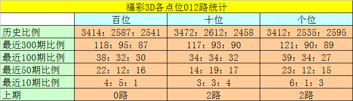 十位分析:该位最近10期开出了3个0路号码、3个1路号码、4个2路号码,2路号码热出。本期排除1路号码,参考号码:3。