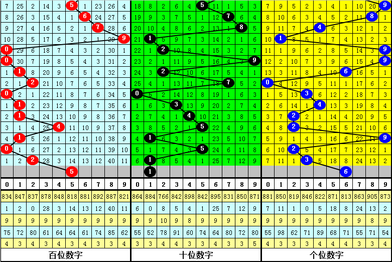 百位上期出现:温号2,该位连续十期以热号出现较多,以冷号出现较少,本期该位温号有4个:5、6、7、9,看好温号转热,关注号码5。