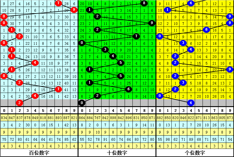 (2)在号码频次方面,开出个数最少的三个号码为:8、3、5,一般来说这三个号码不会同时出现;开出个数最多的四个号码分别为:2、1、0、4,本期看好这四个号码中包含1-2个开奖号码,注意号码2。