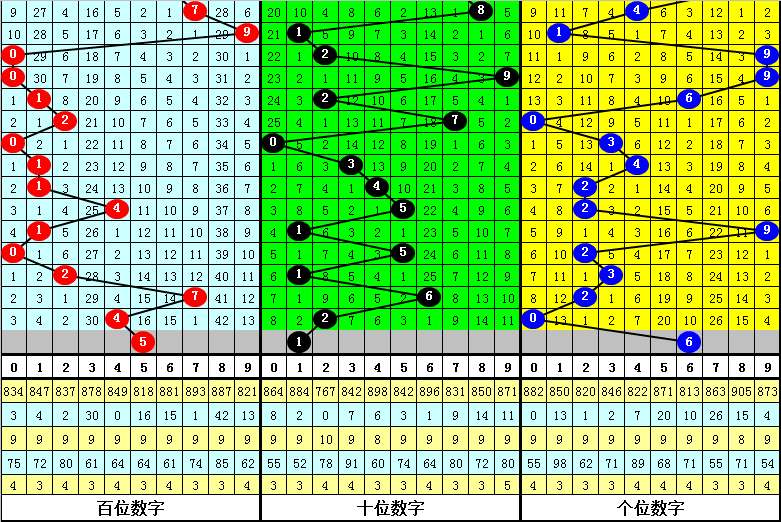 2.福彩3D第2025038期-第2026037期组三出现(其中包含4期豹子号)95出现概率为27%;半顺出现140期,其中包含23期全顺,出现概率为40%;杂六出现116期,出现概率为33%。