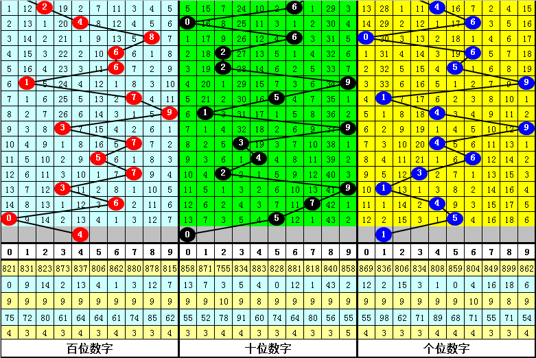 从以上统计可以看出,百十位两码合差5与5同时出现之后其下期两码合差表现最热的4个分别为:1245,本期百十位两码合差可以参考这四码中的数据。