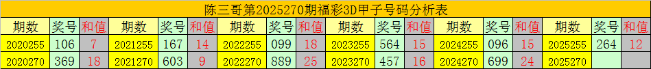 则,第2025270期奖号可以参考第2025255期奖号:264。