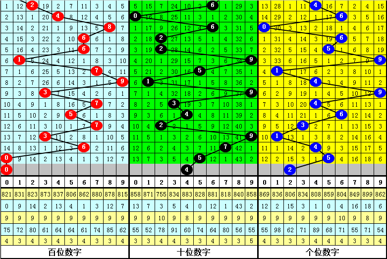 另外,在组选分布中,号码8,开出次数最多,共出现了20次;号码0,开出次数最少,共出现了4次。本期防止号码组08中落号。
