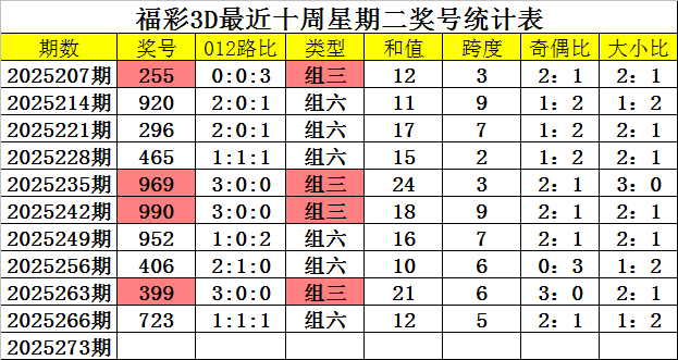 福利彩票3D上周二:第2025266期奖号为723。