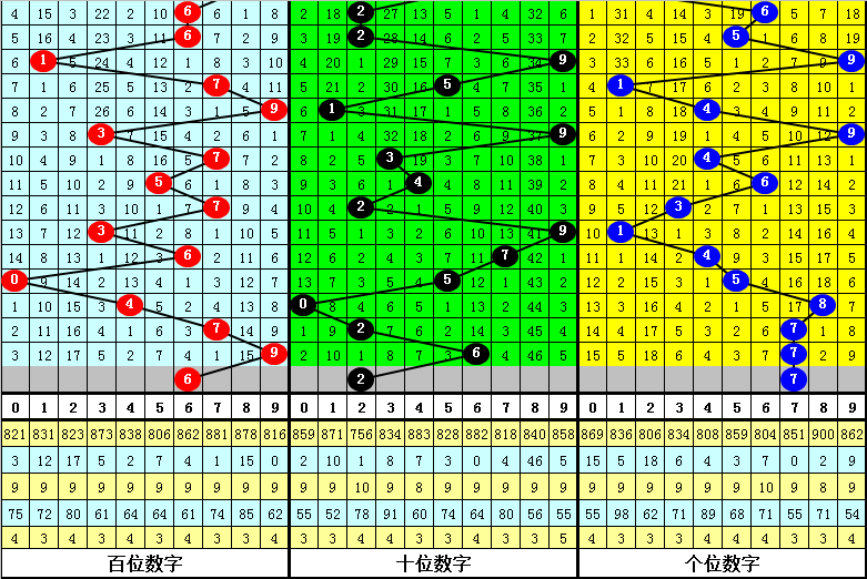 百位号码:第25268期-25272期奖号为:6-0-4-7-9,振幅为9点,分布较分散,本期看好百位走低,注意号码6。