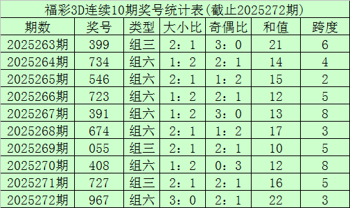 开奖回顾:福利彩票3D第25272期奖号开出967。奖号类型为组六,奇偶形态为奇偶奇,大小形态为大大大。