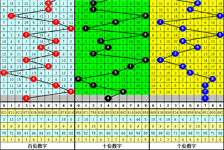 百位推荐:近10期出现5个0路号、4个1路号、1个2路号,0路号大热,2路号走势低迷。本期注意0路号,关注号码0、3、9。