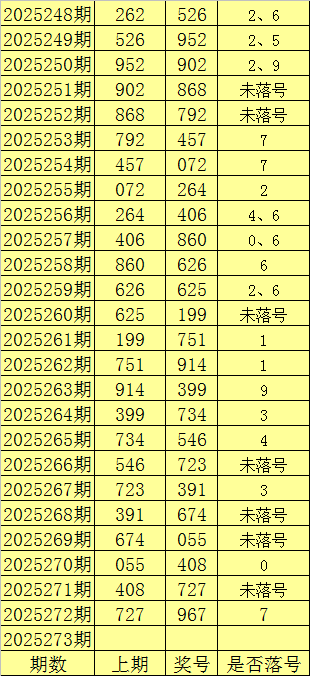 福彩3D第2025273期推荐