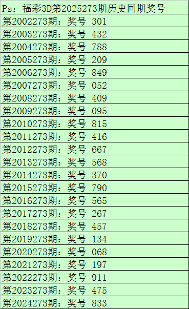 财迷福彩3D第2025273期综合推荐: