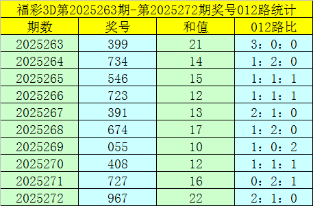 福彩3D第2025273期012路分析
