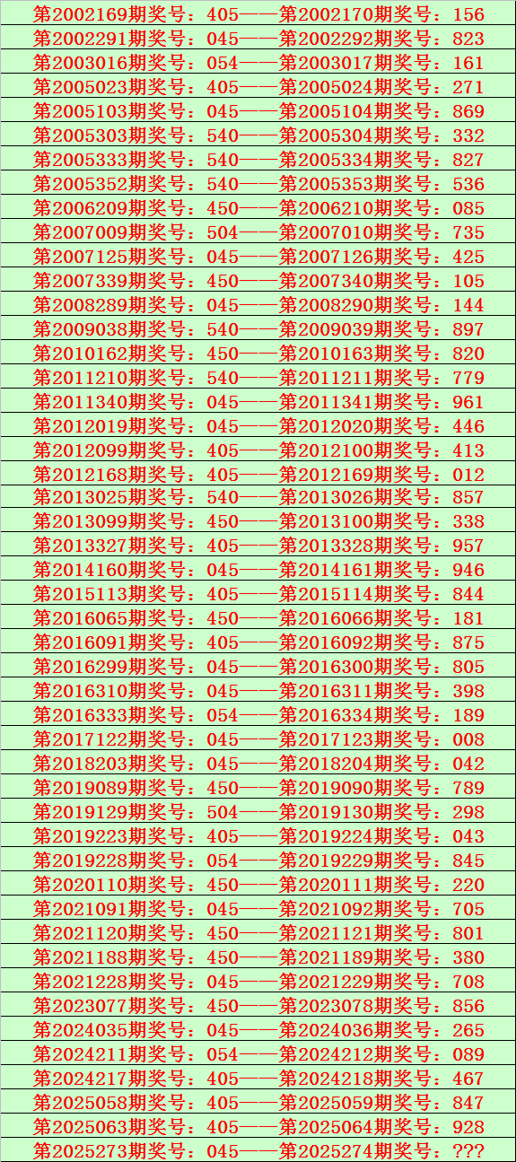 福彩3D第2025274期开奖日期:2025年10月15日,历史上第274期已开出了23次奖号,历年同期号码分别为:556、611、805、262、426、817、922、593、794、342、267、600、361、755、883、944、557、493、891、987、867、995、172。