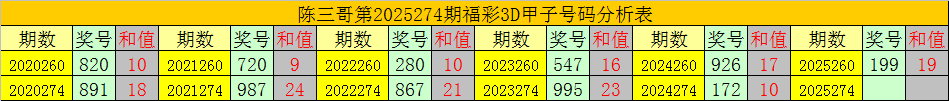则,第2025274期奖号可以参考第2025260期奖号:199。