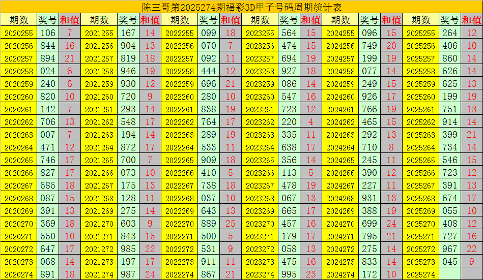 第2020年-第2024年的第260期奖号分别为:820、720、280、547、926,第2020年-2024年的第274期奖号分别为:891、987、867、995、172。其中: