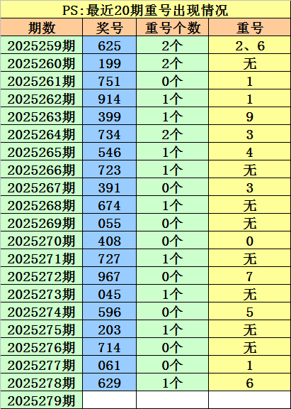 开奖回顾:福彩3D第2025278期开出奖号:629。