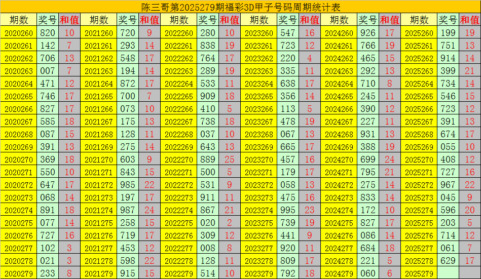 第2020年-第2024年的第258期奖号分别为:024、946、444、927、077,第2020年-2024年的第279期奖号分别为:233、915、514、792、060。其中: