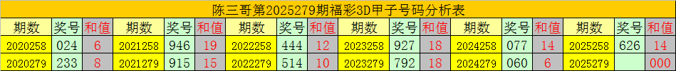 则,第2025279期奖号可以参考第2025258期奖号:626。