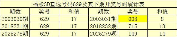 一、开奖回顾:第2025278期福彩3D奖号为629。奖号奇偶比为1:2,和值为:17,跨度为:7。