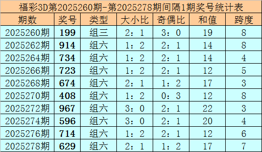 百位分析:上期百位开出奖号:7,最近9期该位奖号大小比为6:3,其中大号7出现3次,5、6、9出现1次,8出现0次,小 号0出现2次,2出现1次,1、3、4出现0次,本期百位参考大号,胆码关注6。