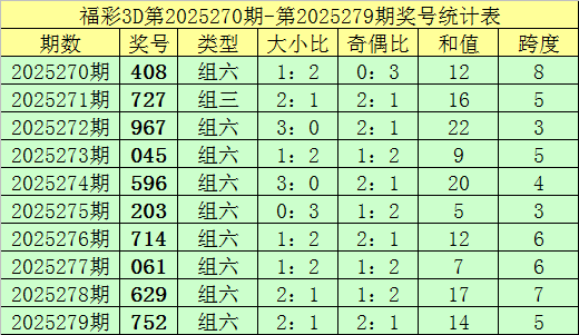 其中大小比2:1,奇偶比2:1,和值14,跨度5。