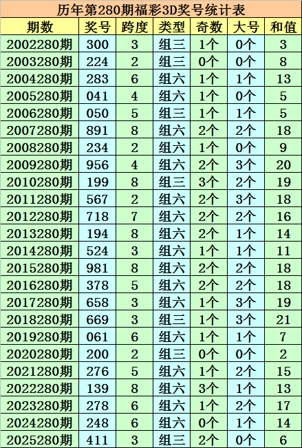 历年第281期福彩3D同期奖号为:843 - 131 - 006 - 762 - 981 - 728 - 766 - 459 - 551 - 481 - 438 - 005 - 339 - 144 - 998 - 609 - 947 - 980 - 114 - 235 - 622 - 684 - 900。