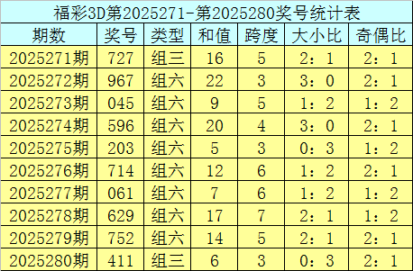 上期回顾:福利彩票3D第2025280期奖号为411。