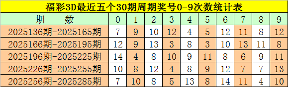 在最近一个30期周期内(第2025256期-第2025285期),豹子奖号没有出现,组三奖号开出了8次,所占比例为32%,组六奖号共出现22期,开出比例为88%,上期出现组六号码之后,本期看好组六号码继续开出。