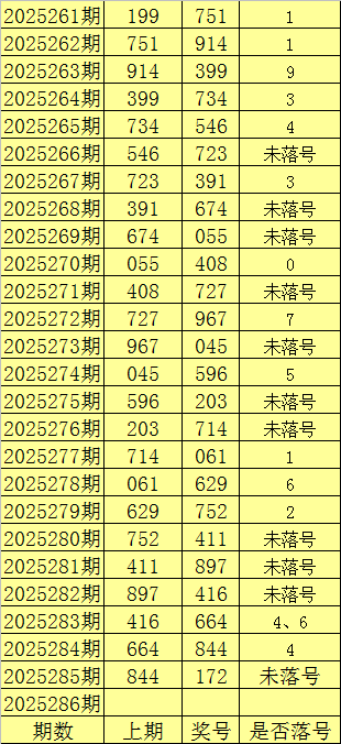 福彩3D第2025285奖号172,重号未落号。在最近100期(第2025186期-2025285期)中,重号落号53期;最近20期重号落号概率为45%;最近10期重号落号概率为50%。本期预计重号可能落号。