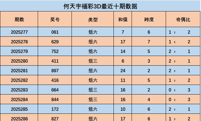 上期开奖:福利彩票3D第2025286期奖号为827。类型组六,奇偶比为1:2,奖号和值17,奖号跨度为6。