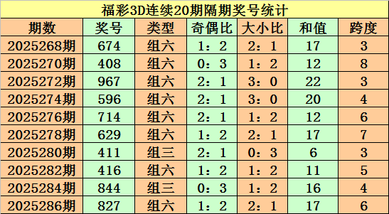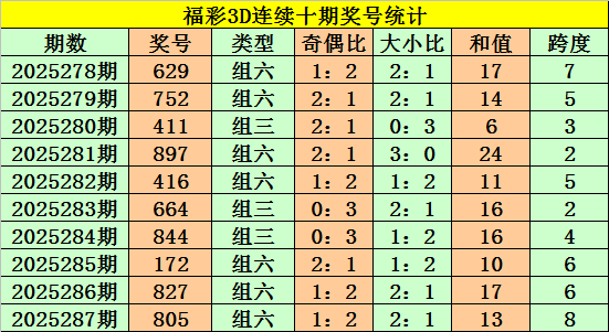上期回顾:福彩3D第2025287期奖号:805。组六、大小大、偶偶奇。
