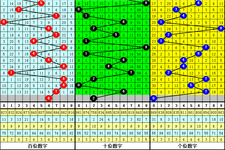 百位分析:百位上期开出号码7,历史上该位号码7出现了884次,最近100期号码7出现次,上期间隔8期再次出现。