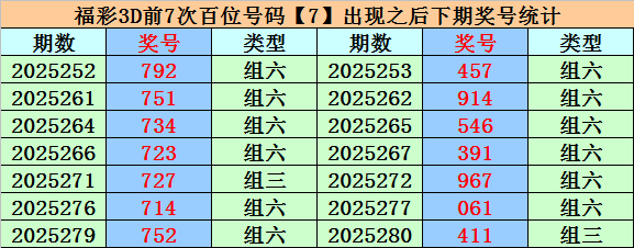 个位分析:上期个位开出奖号7,个位历史上号码7已开出854次,最近100期个位号码开出7次,上期号码遗漏1期出现。