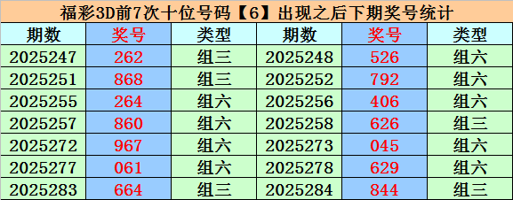 十位分析:十位上期奖号为6,历史上十位号码6已出现885次,最近100期该号码开出6次,上期号码遗漏值为4期。