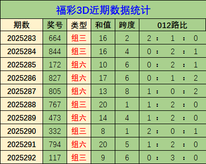 开奖回顾:福彩3D开奖号为117,其中奖号012路比为0:3:0,和值9,跨度为6。