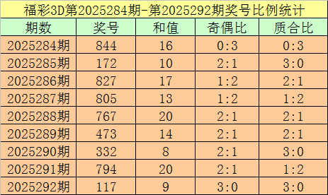 开奖回顾:福彩3D第2025292期:奖号为117,奖号质合比为3:0,大小比为1:2,跨度为6,类型为组三。