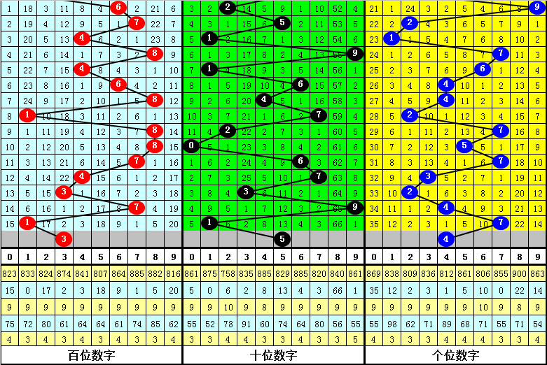 跨度分析:跨度最近10期012路比为3:4:3,012路跨度开出比例相当,前3期跨度分别遗漏1期、8期和5期,本期看好温冷跨度解冻,关注跨度2。