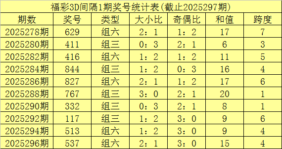 跨度:前5期跨度在4-5之间波动,振幅为2点,走势比较集中,上期开出跨度5,走高1点,本期预计跨度走高,关注跨度6。