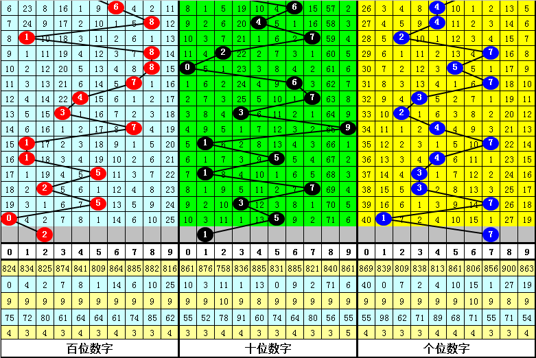百位号码:第25293期-25297期奖号为:1-5-2-5-0,振幅为5点,分布较分散,本期预计百位走高,关注号码2。