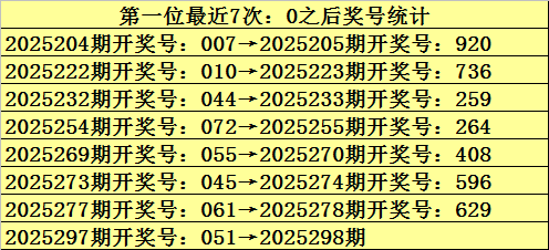 第一位冷码判断:上期奖号为0,遗漏值为19期,目前该位最冷号码为9,遗漏值为25期,本期注意冷码9解冻。