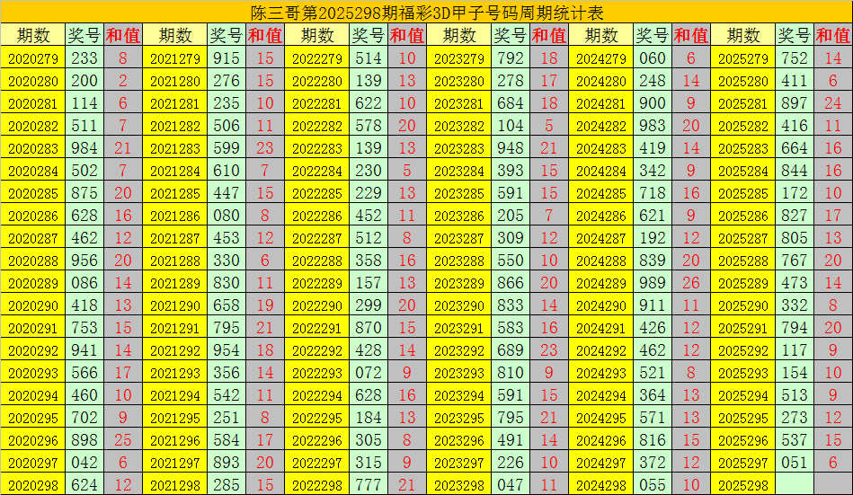 第2020年-第2024年的第293期奖号分别为:566、356、072、810、521,第2020年-2024年的第298期奖号分别为:624、285、777、047、055。其中: